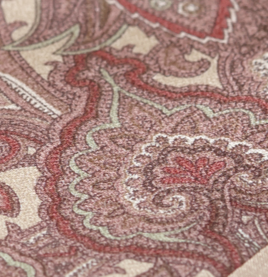 Paisley,佩斯利花紋又叫變形蟲花紋,是一種由圓點和曲線組成的華麗紋樣,狀若水滴。它的名字來源於蘇格蘭西部一紡織小鎮,這裡因大量生產該紋樣的披肩而聞名。此花紋細膩、繁複、華美,具有古典主義氣息。