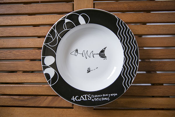 四隻貓是巴塞隆納藝術家的團聚地點,而靈感也來自巴黎的黑貓夜總會(Le Chat Noir),在此舉辦藝術展覽,文學和音樂會議,有時還有木偶和皮影戲表演。 畢卡索在其藝術生涯的早期,曾頻繁光顧四隻貓酒吧-餐館,他的第一次個人作品展就是在此舉行的,而且,還為四隻貓酒店製作宣傳海報 (後來成為菜單的封面)。在以前的收藏作品中,最突出的是一幅卡薩斯自畫像,描繪他抽著菸斗,同時與羅梅烏腳踏雙人自行車,現在這些畫作都收藏在加泰羅尼亞國家藝術博物館(MNAC )裡。