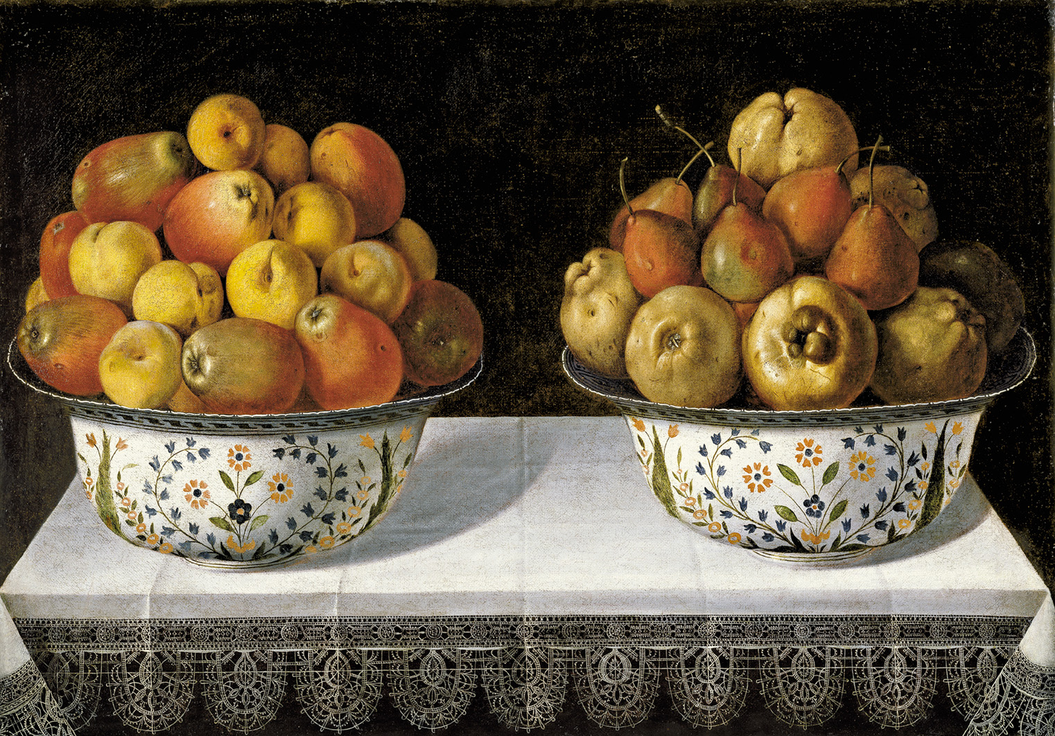 1. 畫家 Tomás Hiepes: 桌上的兩籃水果 (截取部份以下原圖)