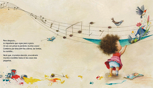 醒來吧,小女孩,張開你的雙眼,看看你身邊的事物,無論是小麻雀或是像牛奶般的雲朵都是為你而生,等待著你的發掘~